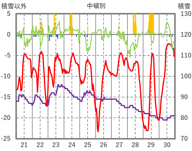 | 日 | 時 | 気温 | 降水 | 風向/風速 | 日照 | 積雪 | 降雪 |