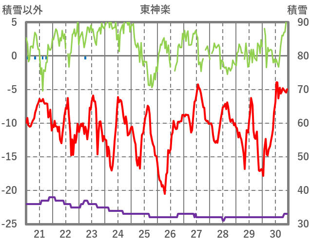 | 日 | 時 | 気温 | 降水 | 風向/風速 | 日照 | 積雪 | 降雪 |