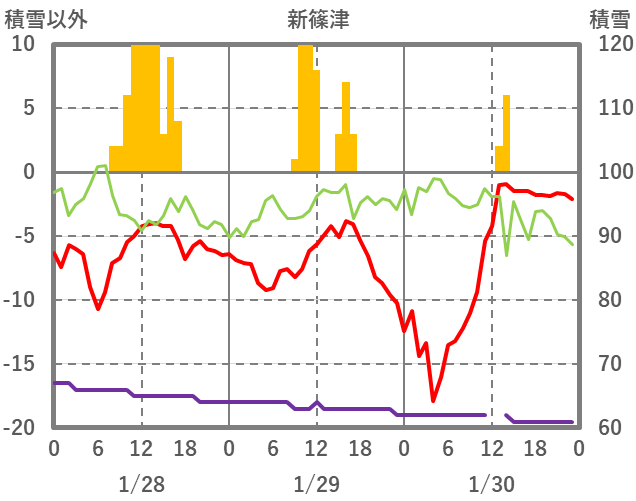 | 日 | 時 | 気温 | 降水 | 風向/風速 | 日照 | 積雪 | 降雪 |