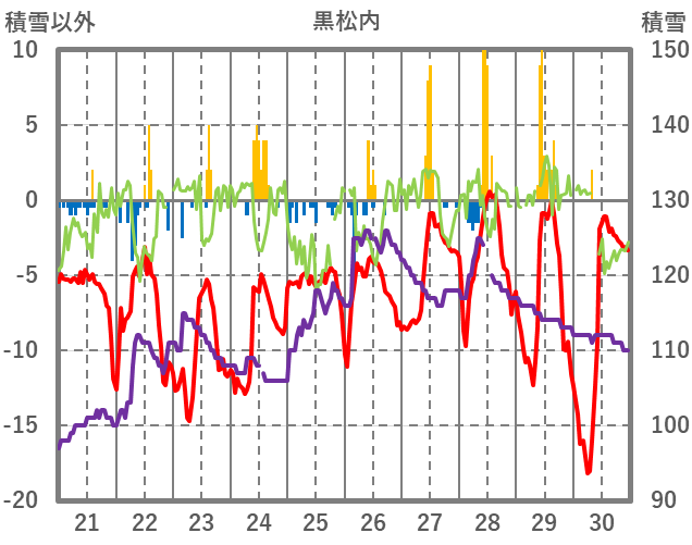 | 日 | 時 | 気温 | 降水 | 風向/風速 | 日照 | 積雪 | 降雪 |