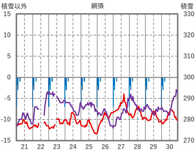 | 日 | 時 | 気温 | 降水 | 風向/風速 | 日照 | 積雪 | 降雪 |