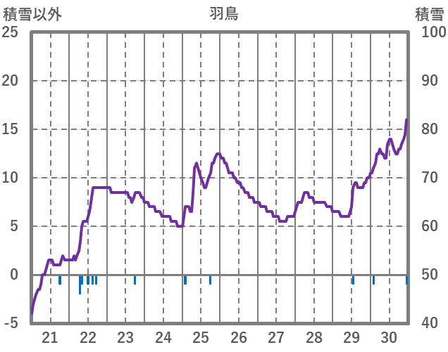 | 日 | 時 | 気温 | 降水 | 風向/風速 | 日照 | 積雪 | 降雪 |