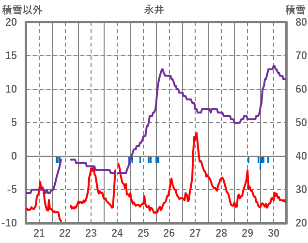 | 日 | 時 | 気温 | 降水 | 風向/風速 | 日照 | 積雪 | 降雪 |