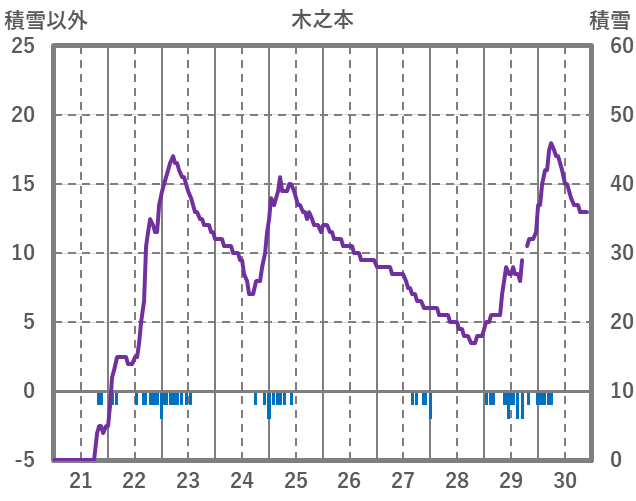 | 日 | 時 | 気温 | 降水 | 風向/風速 | 日照 | 積雪 | 降雪 |