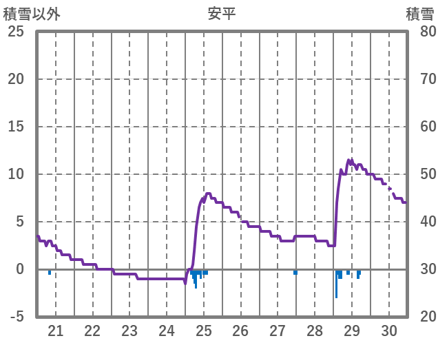 | 日 | 時 | 気温 | 降水 | 風向/風速 | 日照 | 積雪 | 降雪 |