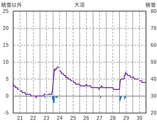 | 日 | 時 | 気温 | 降水 | 風向/風速 | 日照 | 積雪 | 降雪 |
