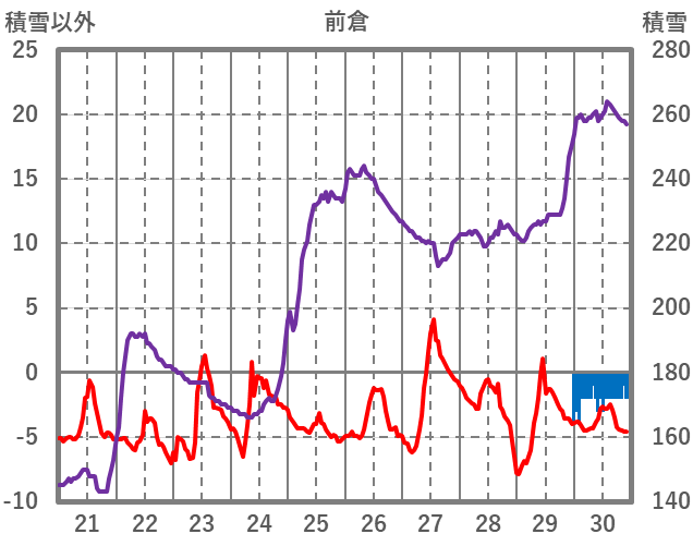 | 日 | 時 | 気温 | 降水 | 風向/風速 | 日照 | 積雪 | 降雪 |