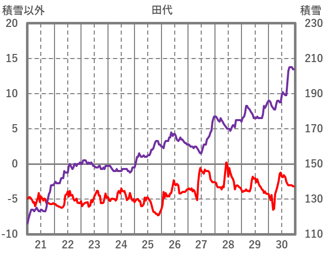 | 日 | 時 | 気温 | 降水 | 風向/風速 | 日照 | 積雪 | 降雪 |