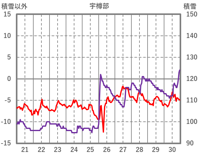 | 日 | 時 | 気温 | 降水 | 風向/風速 | 日照 | 積雪 | 降雪 |