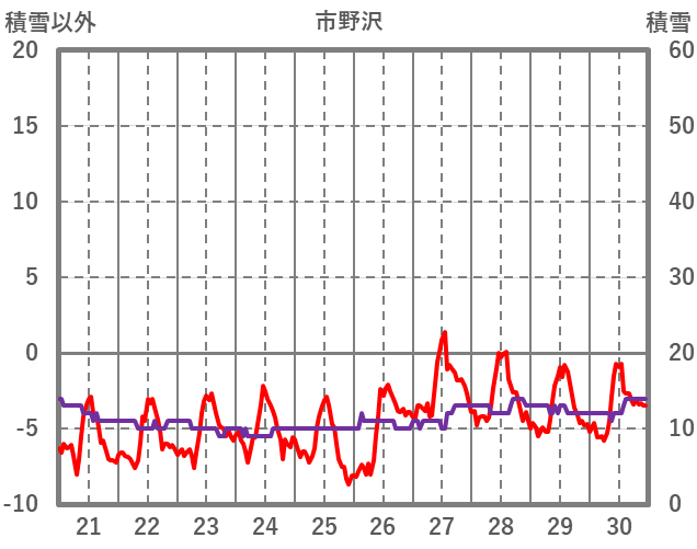 | 日 | 時 | 気温 | 降水 | 風向/風速 | 日照 | 積雪 | 降雪 |
