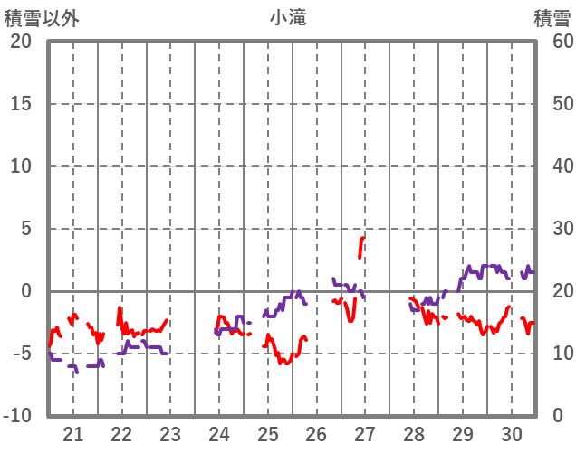 | 日 | 時 | 気温 | 降水 | 風向/風速 | 日照 | 積雪 | 降雪 |