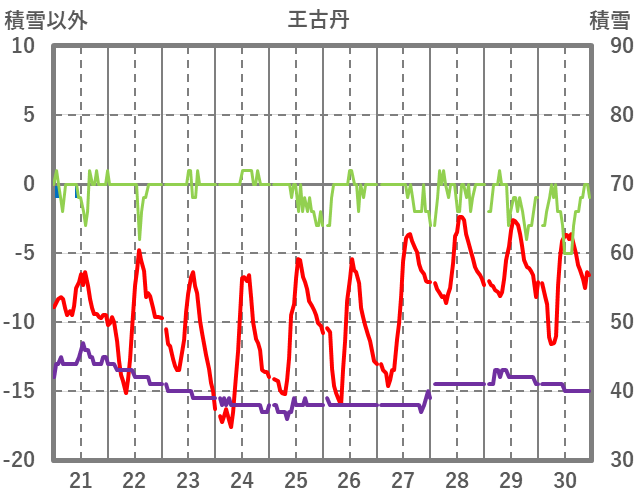 | 日 | 時 | 気温 | 降水 | 風向/風速 | 日照 | 積雪 | 降雪 |