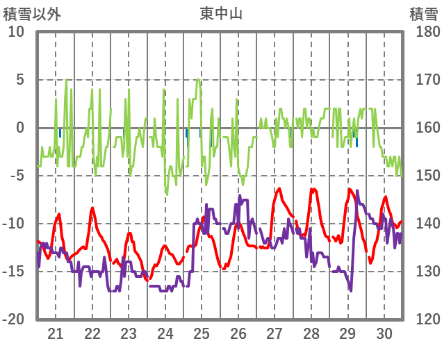| 日 | 時 | 気温 | 降水 | 風向/風速 | 日照 | 積雪 | 降雪 |