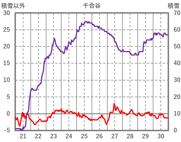 | 日 | 時 | 気温 | 降水 | 風向/風速 | 日照 | 積雪 | 降雪 |