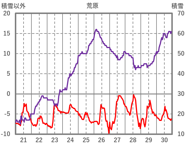 | 日 | 時 | 気温 | 降水 | 風向/風速 | 日照 | 積雪 | 降雪 |