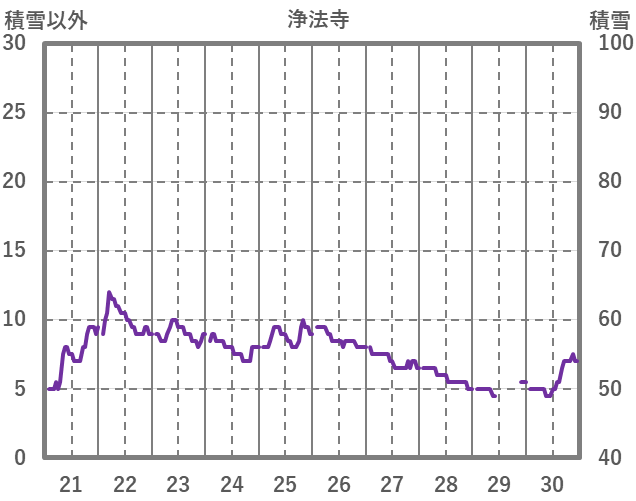 | 日 | 時 | 気温 | 降水 | 風向/風速 | 日照 | 積雪 | 降雪 |