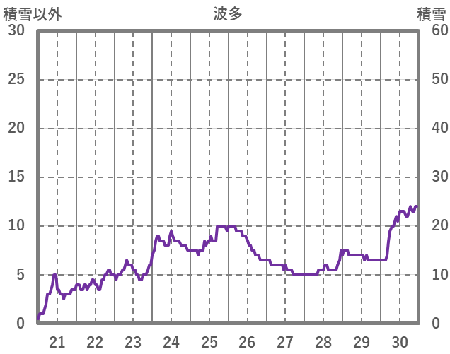 | 日 | 時 | 気温 | 降水 | 風向/風速 | 日照 | 積雪 | 降雪 |