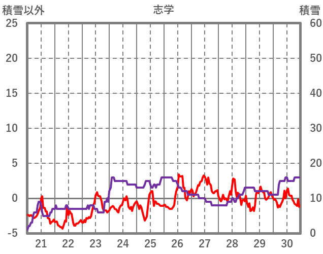 | 日 | 時 | 気温 | 降水 | 風向/風速 | 日照 | 積雪 | 降雪 |