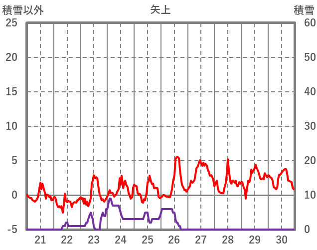 | 日 | 時 | 気温 | 降水 | 風向/風速 | 日照 | 積雪 | 降雪 |