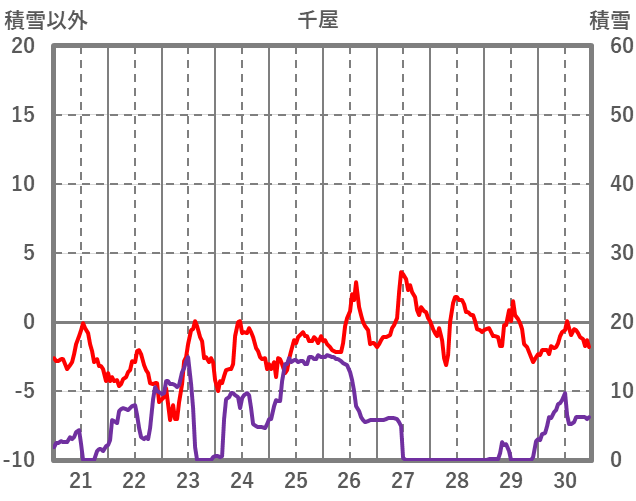| 日 | 時 | 気温 | 降水 | 風向/風速 | 日照 | 積雪 | 降雪 |