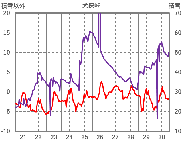 | 日 | 時 | 気温 | 降水 | 風向/風速 | 日照 | 積雪 | 降雪 |