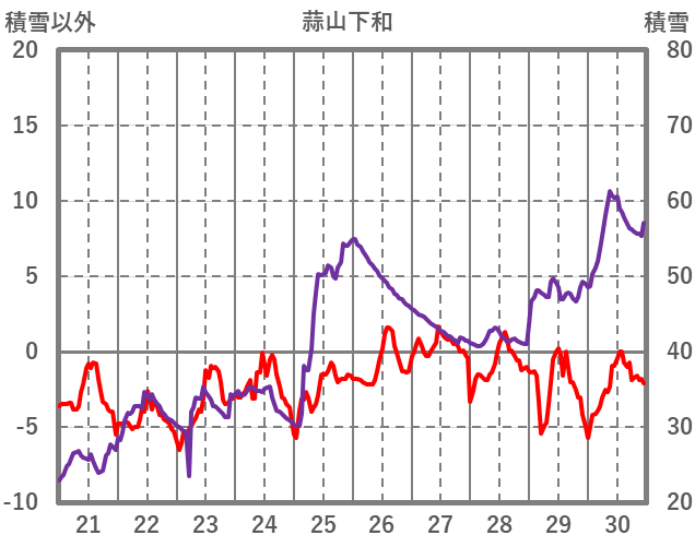 | 日 | 時 | 気温 | 降水 | 風向/風速 | 日照 | 積雪 | 降雪 |