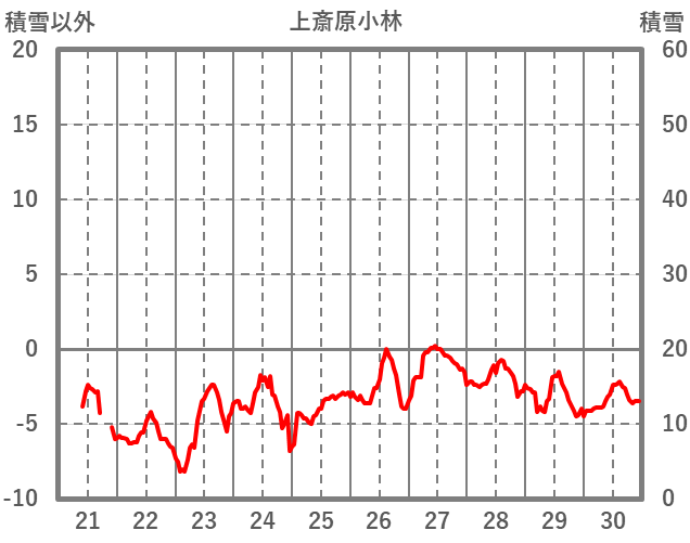 | 日 | 時 | 気温 | 降水 | 風向/風速 | 日照 | 積雪 | 降雪 |