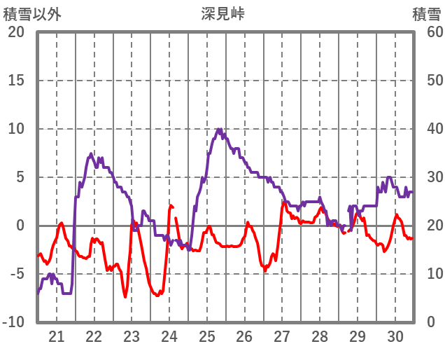 | 日 | 時 | 気温 | 降水 | 風向/風速 | 日照 | 積雪 | 降雪 |