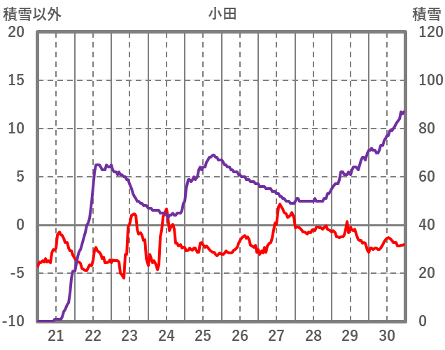 | 日 | 時 | 気温 | 降水 | 風向/風速 | 日照 | 積雪 | 降雪 |