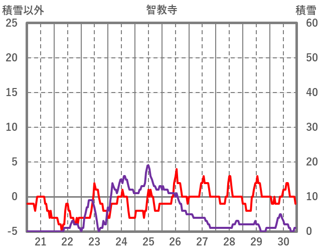 | 日 | 時 | 気温 | 降水 | 風向/風速 | 日照 | 積雪 | 降雪 |