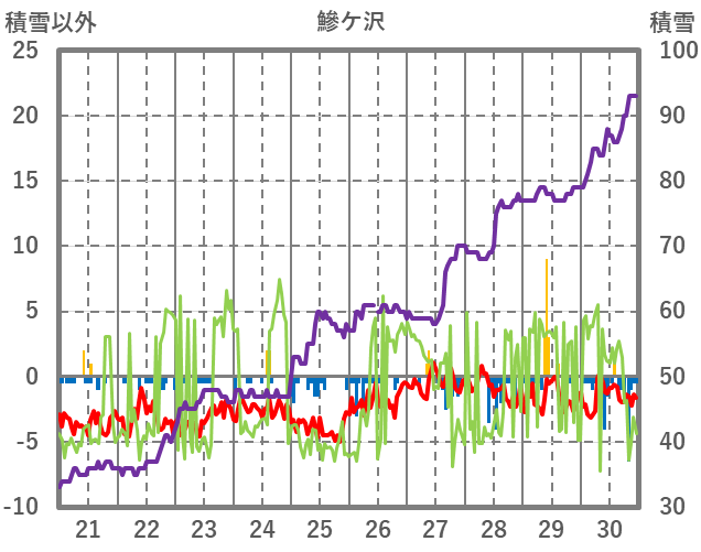 | 日 | 時 | 気温 | 降水 | 風向/風速 | 日照 | 積雪 | 降雪 |