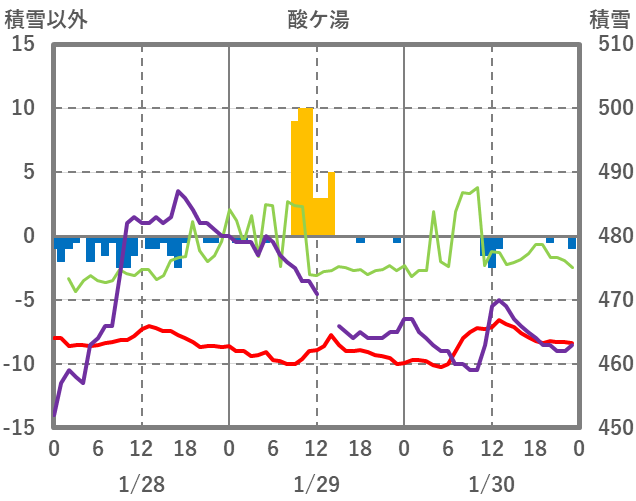 | 日 | 時 | 気温 | 降水 | 風向/風速 | 日照 | 積雪 | 降雪 |