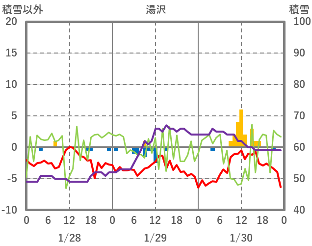 | 日 | 時 | 気温 | 降水 | 風向/風速 | 日照 | 積雪 | 降雪 |