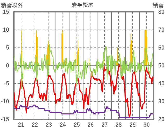 | 日 | 時 | 気温 | 降水 | 風向/風速 | 日照 | 積雪 | 降雪 |