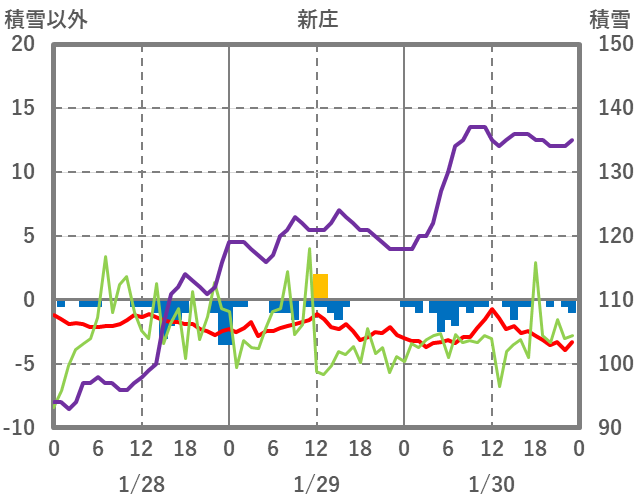 | 日 | 時 | 気温 | 降水 | 風向/風速 | 日照 | 積雪 | 降雪 |