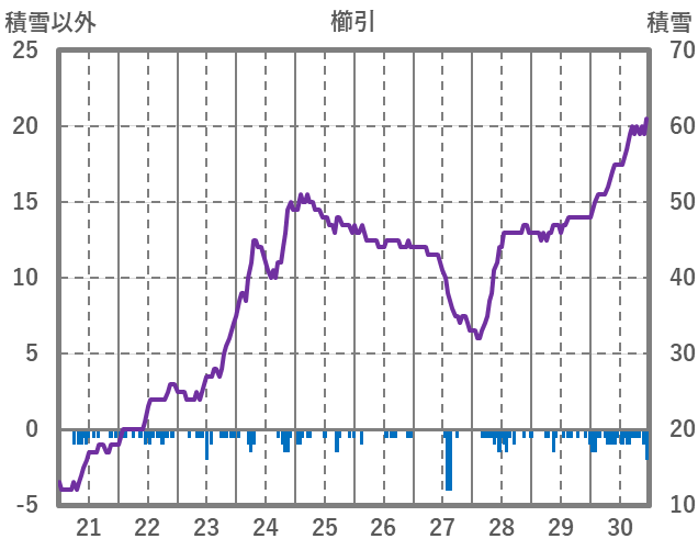 | 日 | 時 | 気温 | 降水 | 風向/風速 | 日照 | 積雪 | 降雪 |
