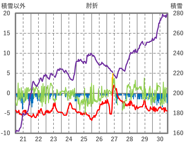| 日 | 時 | 気温 | 降水 | 風向/風速 | 日照 | 積雪 | 降雪 |