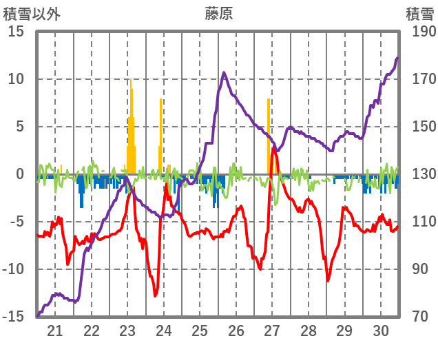 | 日 | 時 | 気温 | 降水 | 風向/風速 | 日照 | 積雪 | 降雪 |