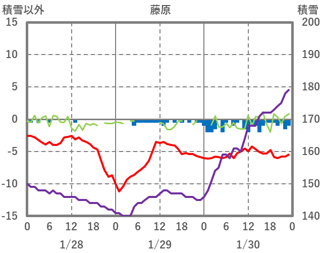 | 日 | 時 | 気温 | 降水 | 風向/風速 | 日照 | 積雪 | 降雪 |