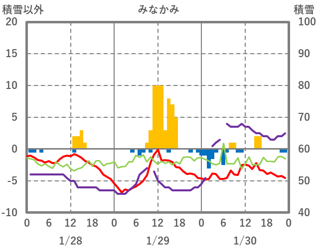 | 日 | 時 | 気温 | 降水 | 風向/風速 | 日照 | 積雪 | 降雪 |