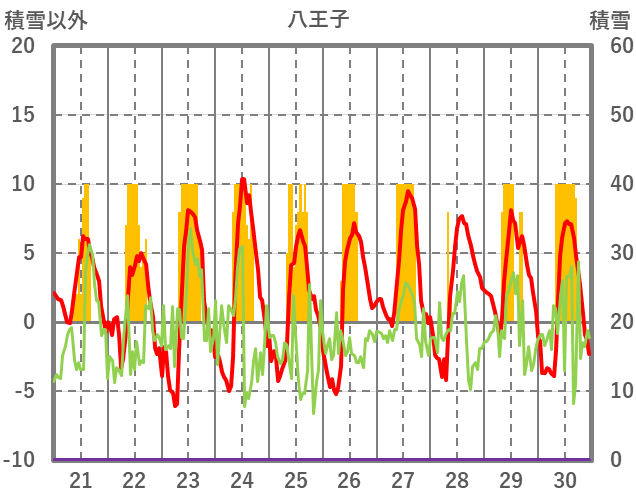 | 日 | 時 | 気温 | 降水 | 風向/風速 | 日照 | 積雪 | 降雪 |