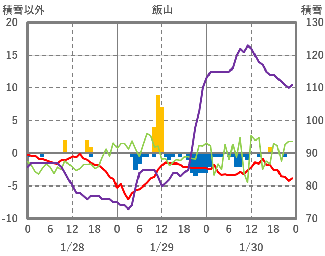 | 日 | 時 | 気温 | 降水 | 風向/風速 | 日照 | 積雪 | 降雪 |