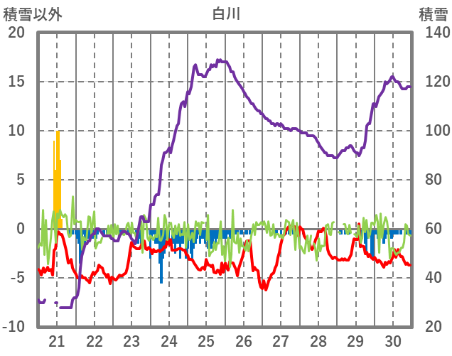| 日 | 時 | 気温 | 降水 | 風向/風速 | 日照 | 積雪 | 降雪 |