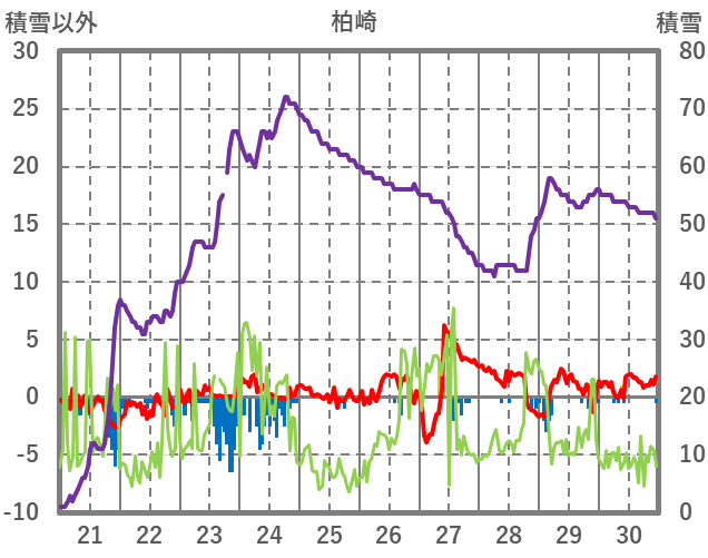 | 日 | 時 | 気温 | 降水 | 風向/風速 | 日照 | 積雪 | 降雪 |