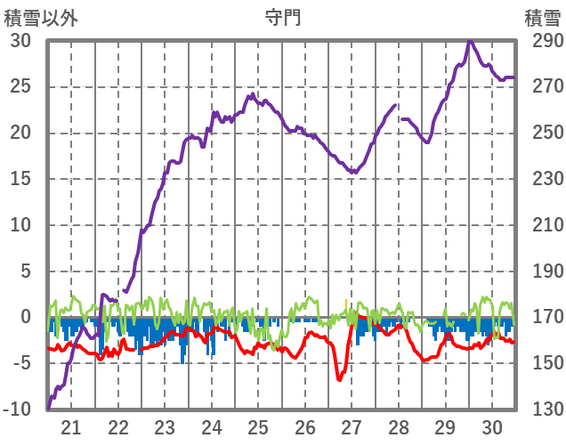 | 日 | 時 | 気温 | 降水 | 風向/風速 | 日照 | 積雪 | 降雪 |