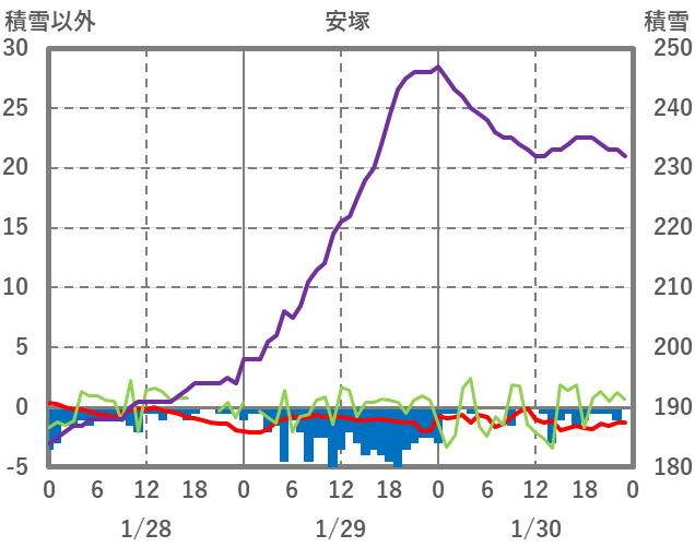 | 日 | 時 | 気温 | 降水 | 風向/風速 | 日照 | 積雪 | 降雪 |