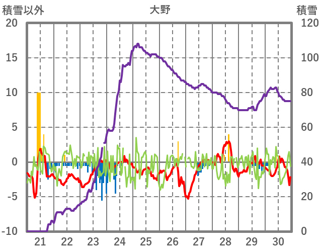 | 日 | 時 | 気温 | 降水 | 風向/風速 | 日照 | 積雪 | 降雪 |