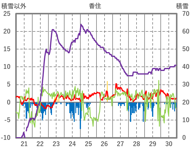 | 日 | 時 | 気温 | 降水 | 風向/風速 | 日照 | 積雪 | 降雪 |