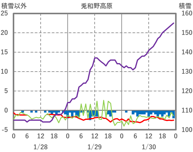 | 日 | 時 | 気温 | 降水 | 風向/風速 | 日照 | 積雪 | 降雪 |