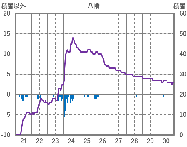 | 日 | 時 | 気温 | 降水 | 風向/風速 | 日照 | 積雪 | 降雪 |